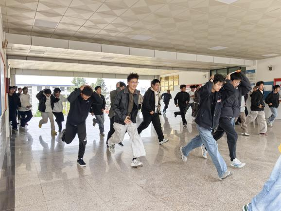 3月11日,小石坝校区南院铁道运输学院、机电工程学院率先开展演练,师生严格按照预案完成避险、疏散、集结、人员清点、讲评全流程,熟悉逃生路线与自救要领。