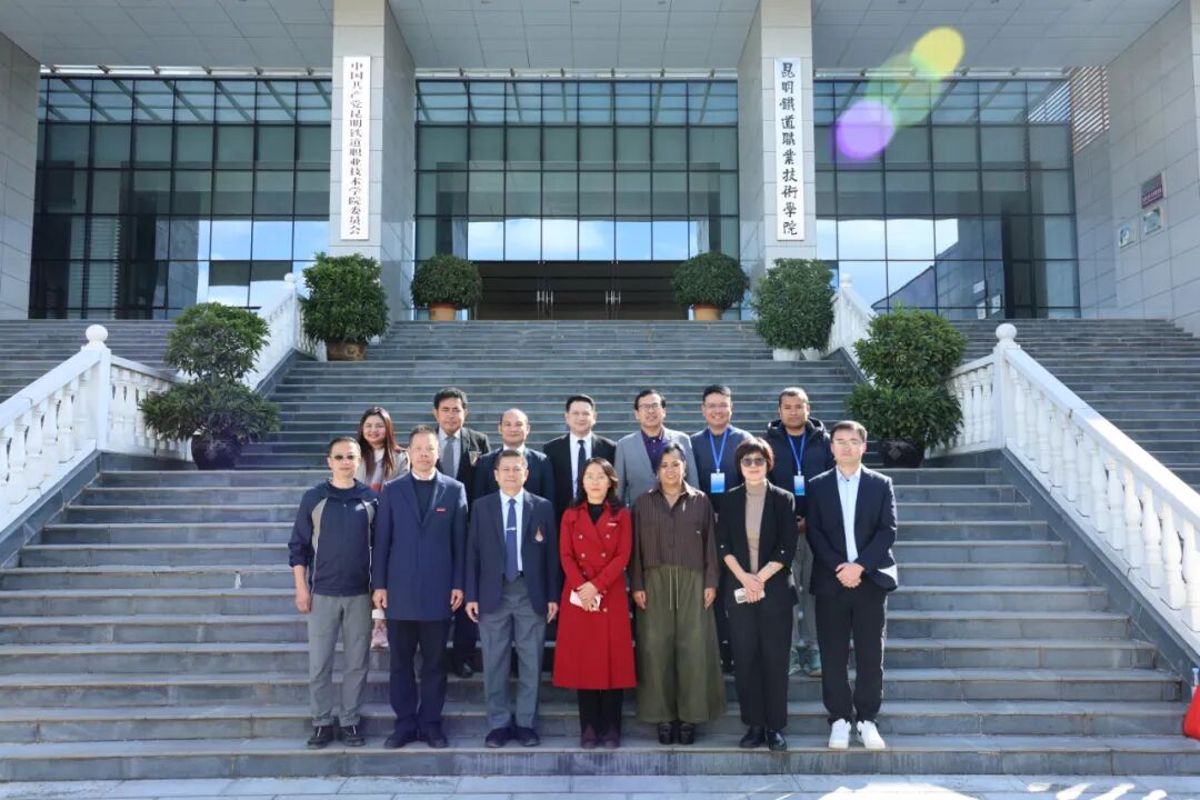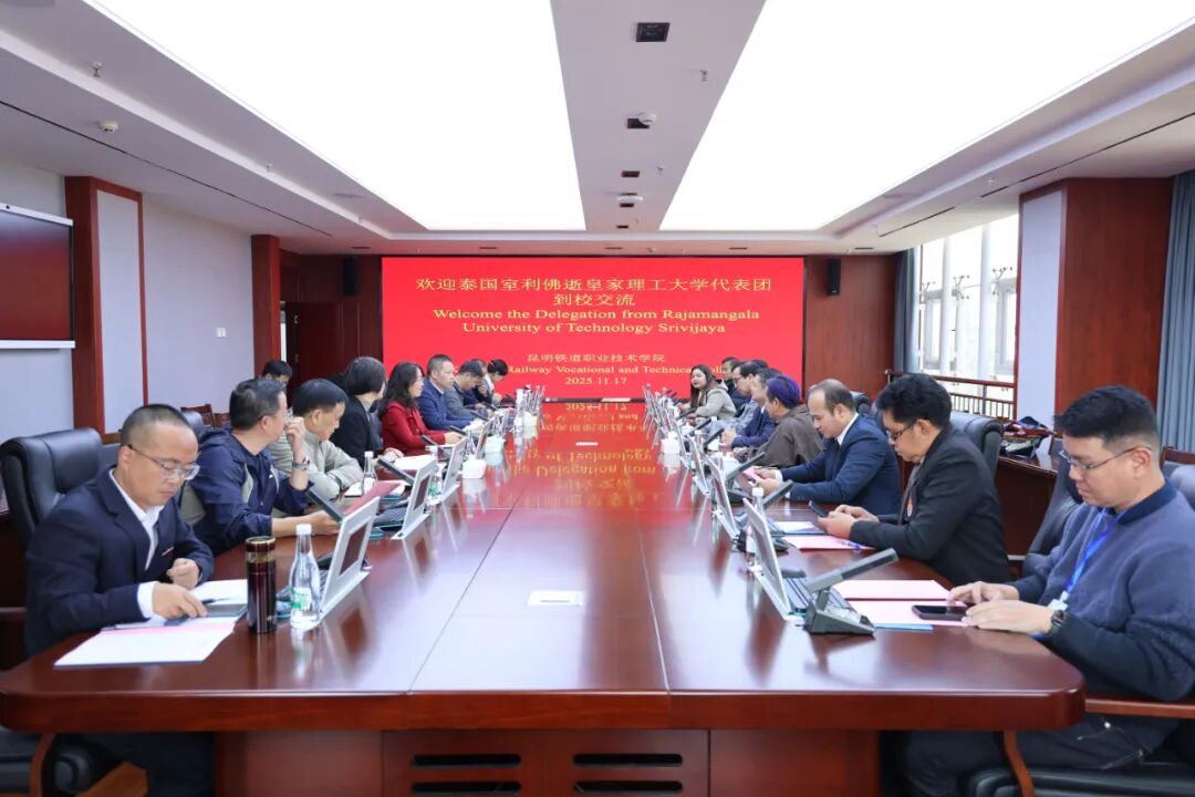 11月17日,泰国是威差亚皇家理工大学校长苏瓦特·坦亚罗教授率代表团一行七人到访昆明铁道职业技术学院,参观了学院的实训设施,并开展座谈,共叙合作情谊,共绘发展蓝图。