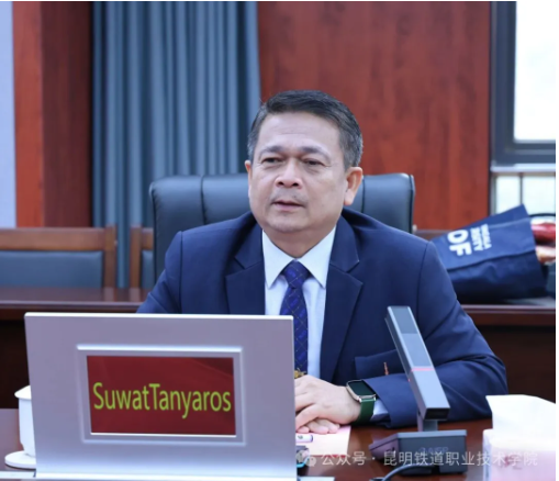 苏瓦特校长对学院的热情接待表示感谢,并对学院在铁路职业教育国际化领域的实力与成果表示高度赞赏。他强调,是威差亚皇家理工大学高度重视与昆明铁道职业技术学院的合作,希望以此次访问为契机,进一步拓展合作领域,深化双边师生交流与课程共建。