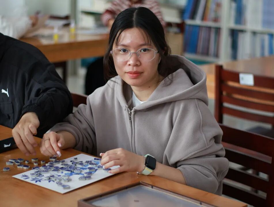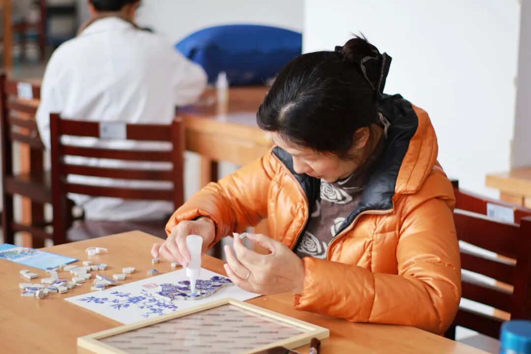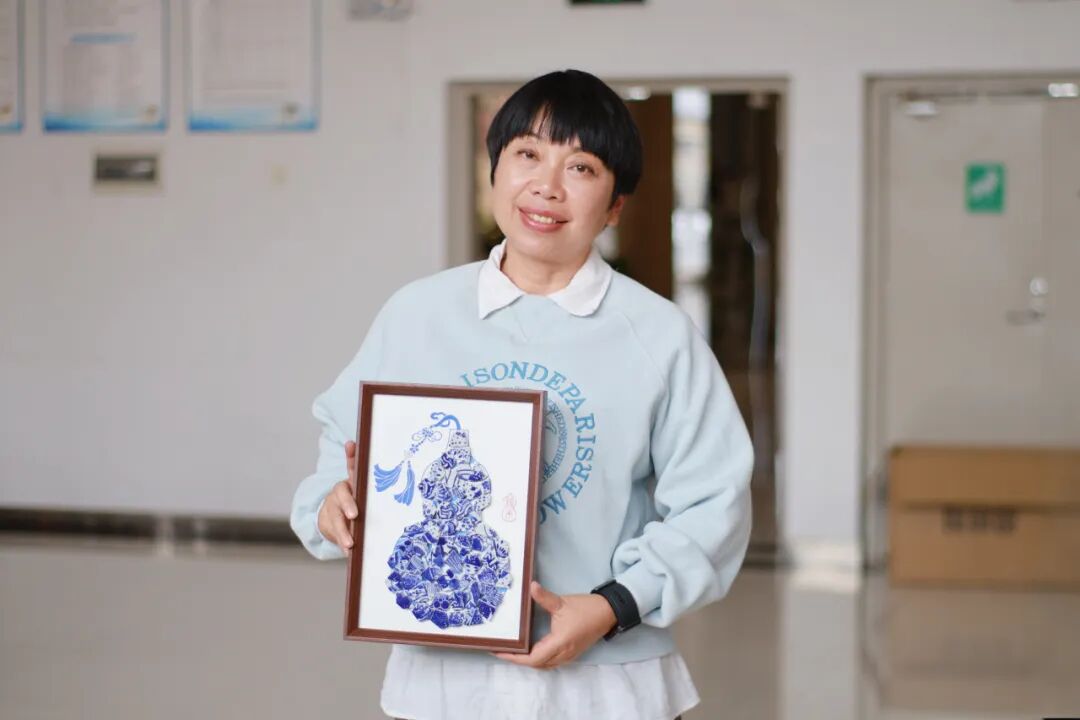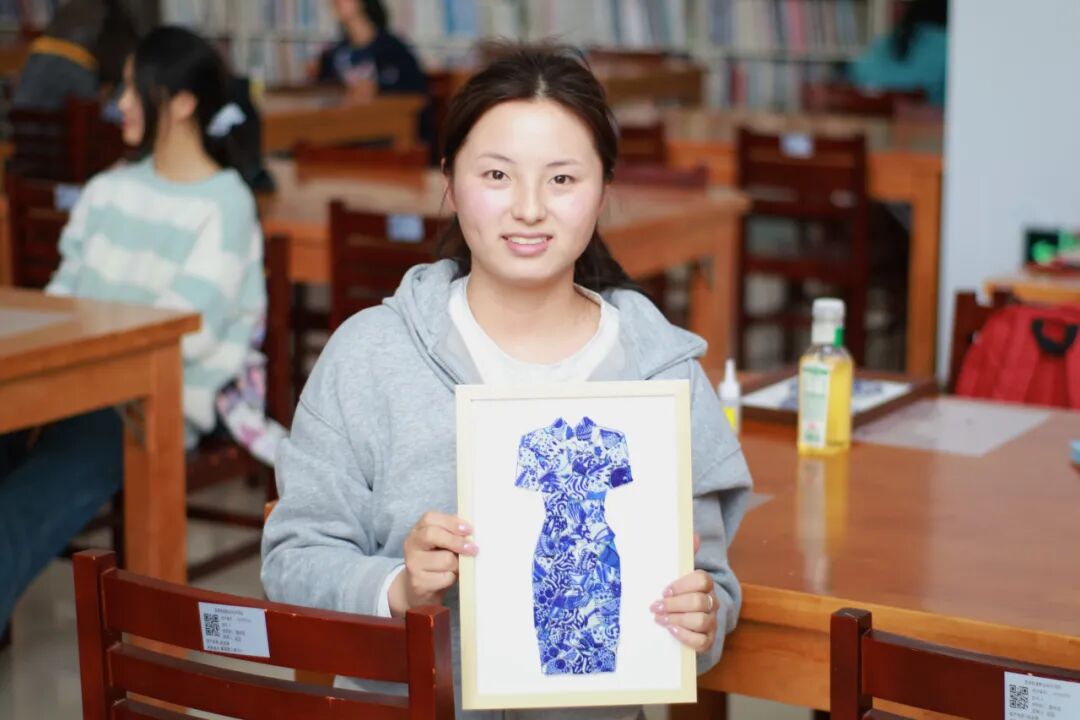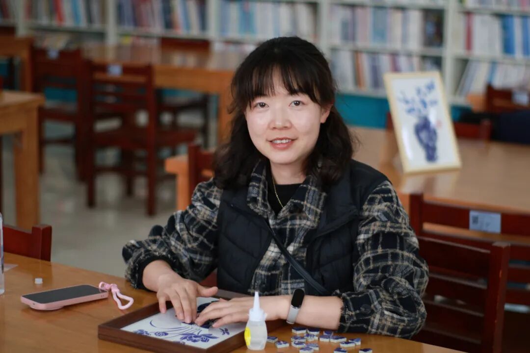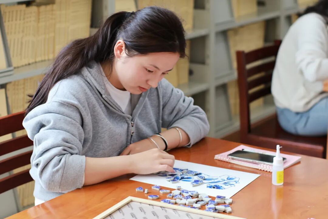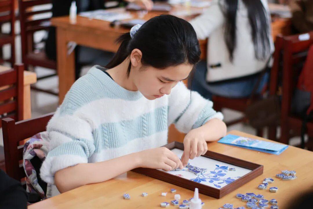 随后,创意手工环节正式展开。老师和同学们纷纷化身“生活艺术家”,面对琳琅满目的青花瓷碎片,她们巧思构图、细心拼贴。经过大家的精心制作,一幅幅独具匠心的青花瓷相框画作品逐一呈现。大家手捧作品合影留念,定格下这美好的瞬间。