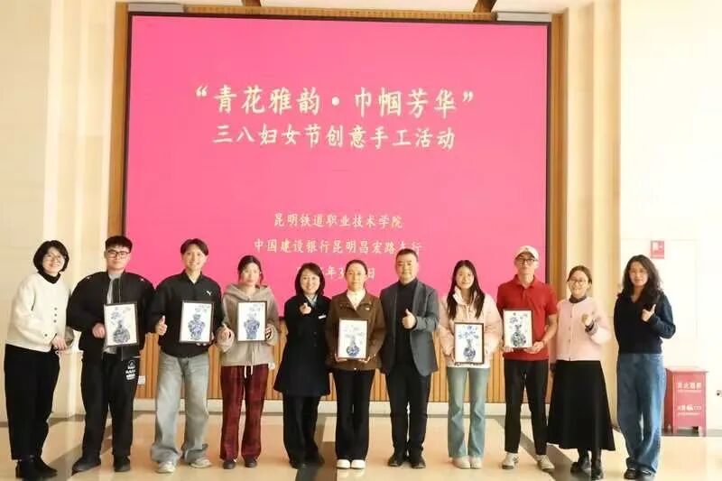 为庆祝第116个“三八”国际妇女节,弘扬中华优秀传统文化,丰富女教职工精神文化生活,3月6日下午,昆明铁道职业技术学院妇女联合会与中国建设银行昆明昌宏路支行携手举办了“青花雅韵·巾帼芳华”创意青花瓷相框画手工活动。学院女教职工和女学生代表(含留学生)欢聚一堂,在指尖艺术中感受传统美学,共度美好节日时光。