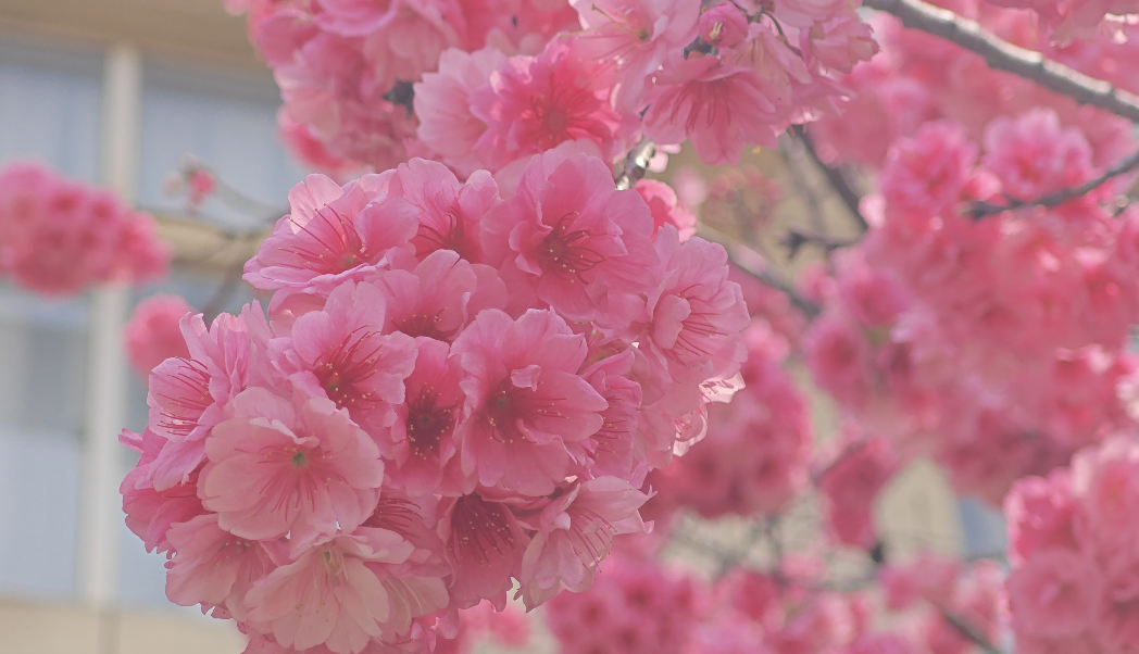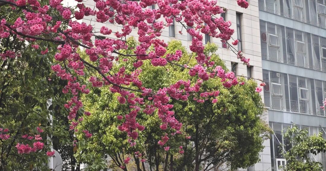 春风拂过校园,沉寂了整个冬天的枝芽终于迎来了盛放。粉红的花瓣挨挨挤挤,缀满枝头,整个校园都被这温柔的春意包裹,连空气里似乎都弥漫着清甜的花香。