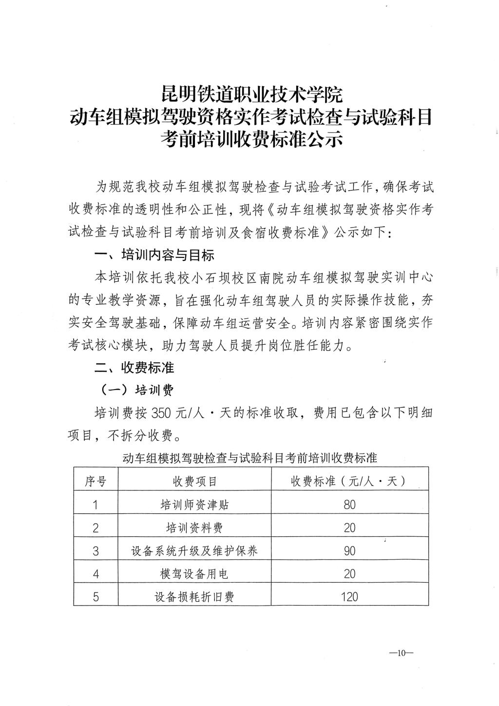 动车组模拟驾驶资格实作考试检查与试验科目考前培训收费标准公示